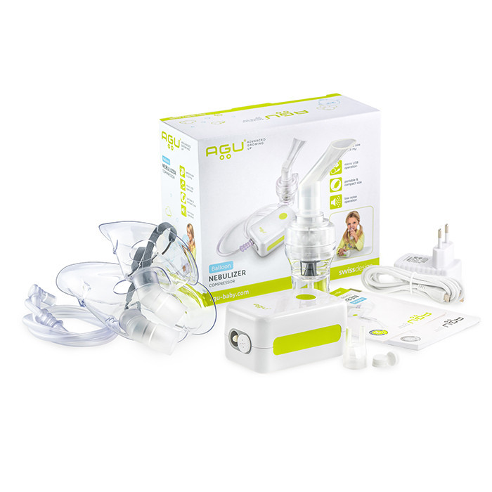 Компрессорный небулайзер AGU не раздражает детей шумом и исключительно компактен.