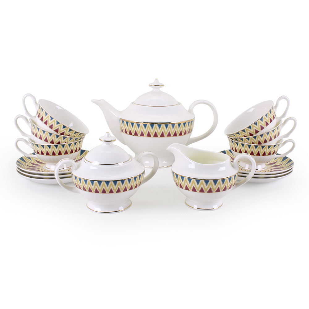 чайник 1 шт, молочник 1 шт, сахарница 1 шт, чашки 6 шт, блюдца 6 шт. |